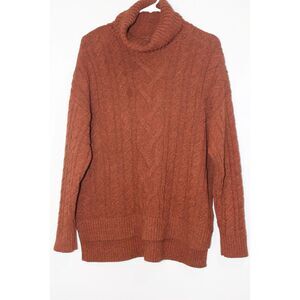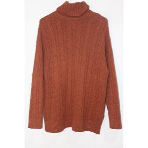 Joie Rust Orange/Brown Soft Chunky Cable Knit Turtleneck Sweater L