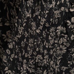 Floral long sleeve dress, square neck, front slit, and rouched back.
