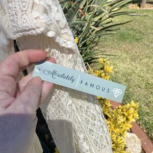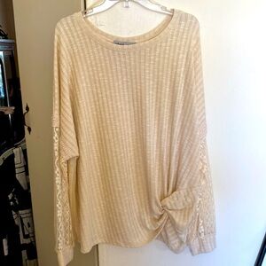 This is a BRAND NEW - NEVER WORN Cream - Off White Top from ABSOLUTELY FAMOUS. Size 2X - Lace Sleeves and Accents on the front. Super Pretty!
