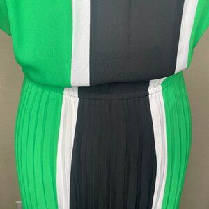 • Style Profile: Colorblock, Pleated, Contemporary, Mod, Geometric, Wedding Guest, Cocktail, Chic, Midi, Elegant, Preppy, Bold, Summer, Spring
