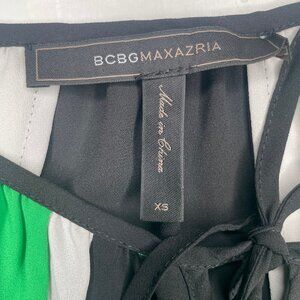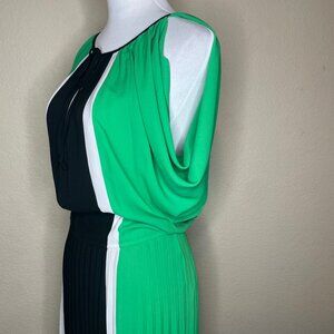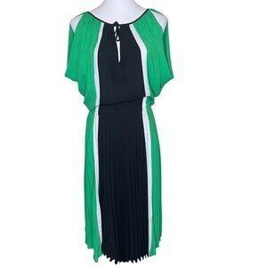BCBGMAXAZRIA Iona Colorblock Pleated Cold Slit Shoulder Midi Dress - XS