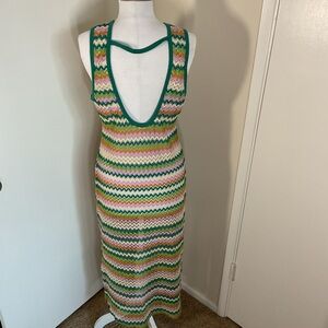 Miken Swim Colorful Knit Chevron Swim Coverup Sleeveless Zig Zag Pattern Size XL