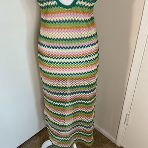 Multicoloured knit maxi dress with a retro vibe #retro #maxidress #knitwear