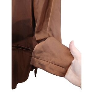 DR2 Bronze Satin Longline Duster Cardigan Open Front Bronze L Silky Lagenlook