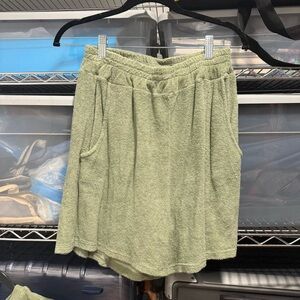 Khaki terry set with a cropped T-shirt and matching shorts—comfortable, breathable, and perfect for laid-back days.