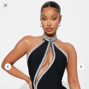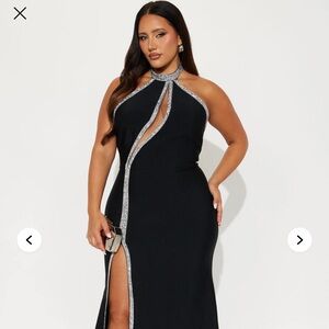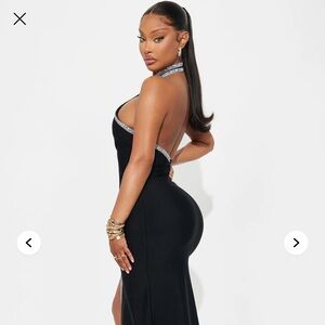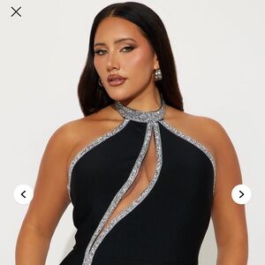 Turn heads with this stunning black dress featuring elegant silver accents. Perfect for any special occasion.