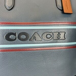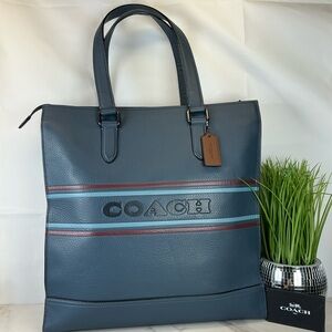Coach Graham Stripe Blue Leather Unisex Tote Bag Work Laptop Crossbody