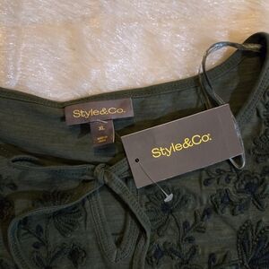 Style & Co Floral Embroidered Slub Knit 3/4 Sleeve Peasant Blouse