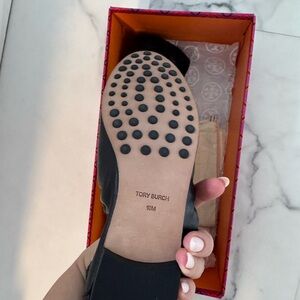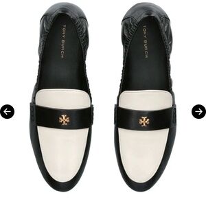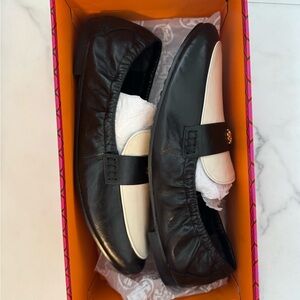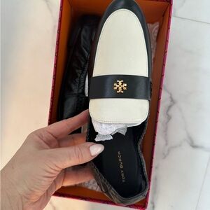 Tory Burch Black and Cream Leather ballet Loafers shoes size 10