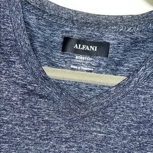 Elegant short sleeve tee by Giorgio Armani. Navy top with light gray gradient. Perfect for everyday wear.