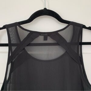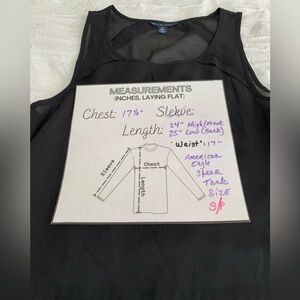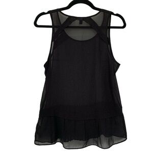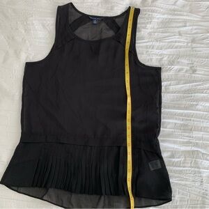 AMERICAN EAGLE Women’s Black Tank Top Sheer Flowy Chiffon Raw Hem Pleated SZ. SP