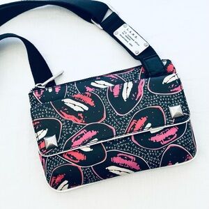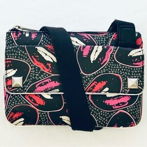 L.A.M.B. Mini Messenger Bag in Black, Pink & Red Lips PVC