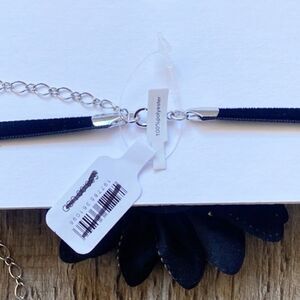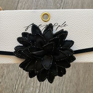 Free People Black Rosette Choker Necklace w Tonal Black Rhinestone Details