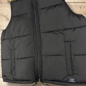 ABERCROMBIE FITCH Quilted Puffer Vest Black Removable Faux Fur Hood Womens XL