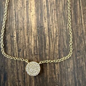 Diamond Covered Disc Set in 14K YELLOW Gold on 16" Chain. NATURAL DIAMONDS. Adjustable chain