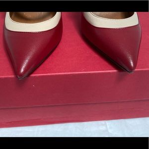 Two-tone leather strappy pumps.