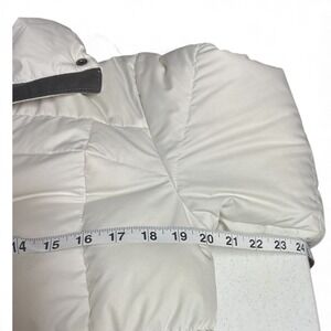Beautiful white womens Columbia down puffer coat size small. The hood for it is missing and there are a couple spots on the back as shown in the last picture. There is also a little bit of browning on the undersides of the arms but it is minimal. Despite that it is a great coat! No tears. Lots of life left!