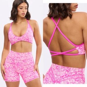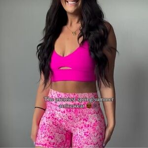 Stylish pink patterned activewear top. Perfect for spring and summer workouts.
