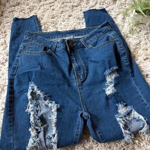 Stylish Distressed women’s high waisted, high-rise ripped distressed 1 X Blue Je
