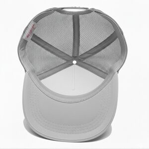 NIP GOD FIRST. Bright and fun gray and white trucker cap. Featuring a bold & stylish design. Adjustable. Circumference 22-24. UNISEX