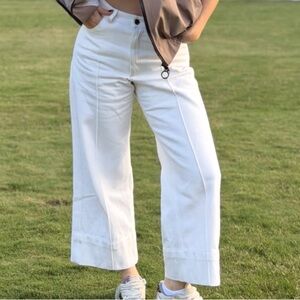 Stylish wide-leg pants in a crisp white jean. Perfect for any occasion.
