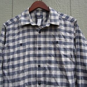 Patagonia Shirt Mens M Grey/white Plaid Pockets Logo Button Up Organic Cotton Casual Comfy hiking