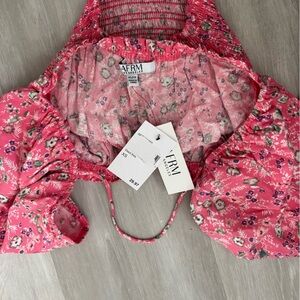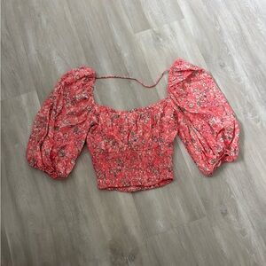 AFRM Waverly Pink Floral Puff Sleeve Smocked Ruffle Crop Top size XS