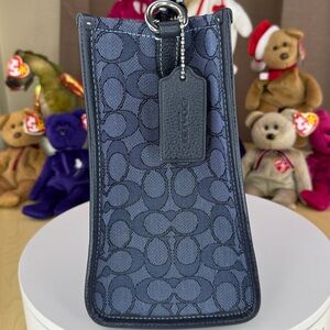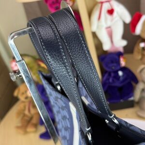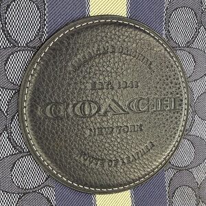 Color: Khaki/blue signature C jacquard canvas with a bold midnight navy/white stripe and a black leather patch.
