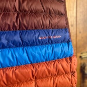 New with tags, never worn Cotopaxi Fuego Down Vest. Men’s size large. “Chestnut and Spice” colorway- orange, blue, and maroon-ish brown.