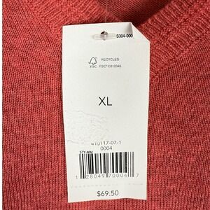Banana Republic Mens XL V Neck Silk Linen Sweater Coral Orange Longβ Sleeve