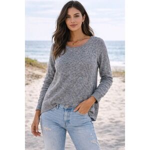 360 Cashmere Women's Grey Confetti Speckled 100% Cashmere Crew Neck Sweater- M