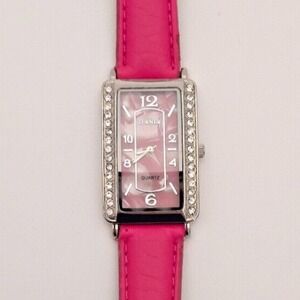 Women's Terner Pink & Silver Toned Bling Wristwatch w/ Adjustable Buckle Band