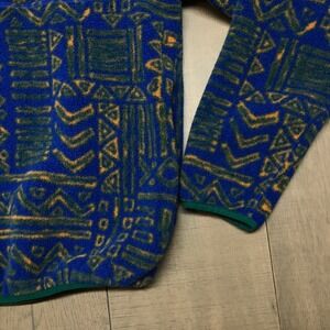 L.L. Bean Jacket Womens Size S or Unisex Blue Beans Classic Fleece Pullover Snap Aztec Camp Travel Outdoor Hiking