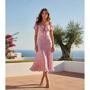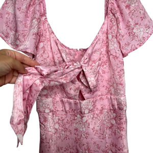 FRANCESCA'S Maria Pink Bow Tie Front Silky Floral Midi Dress Size Large