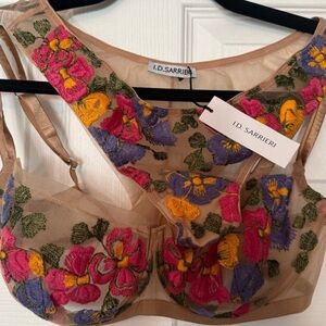 ID Sarrieri Embroidered Floral Set in Tan with Red Blossoms NWT size 34D/Medium
