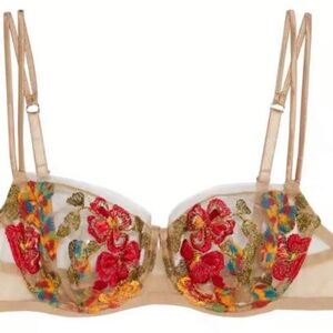 La Dolce Vita Tuscan Summer series by ID Sarrieri. Elevate your lingerie collection with this exquisite embroidered bra. Featuring vibrant red floral patterns on a tan base, it combines elegance and comfort effortlessly.