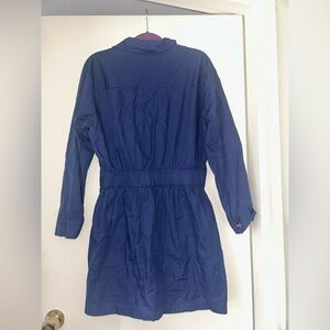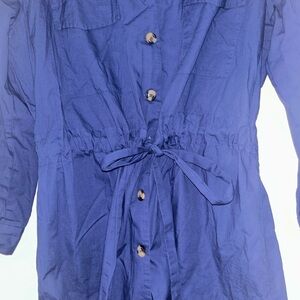 Stylish and versatile blue button-up dress for women. Perfect for layering and adding a pop of color to any outfit.