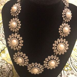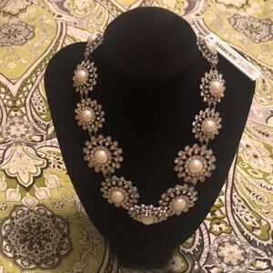 Ann Taylor Pearl Statement Necklace Gold Tone Floral NWT