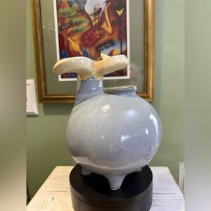 Vintage studio pottery art sculpture. The piece has an opening on top which suggest it may also function as a jug or pitcher.