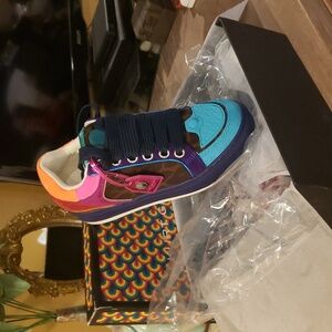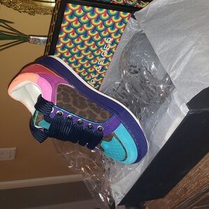 NIB! Kurt Geiger Southbank Tag Logo Leopard Suede Sneakers (8.5)