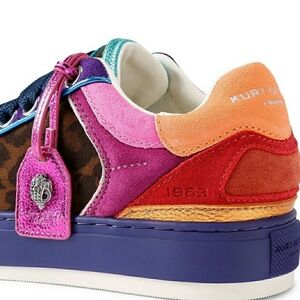 SOLD OUT! Hot style from Kurt Geiger London, the Southbank Tag Logo Ornament Mixed Media Suede Platform Sneakers with leopard print feature: