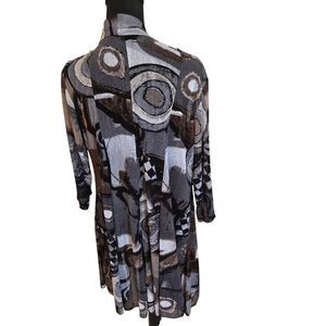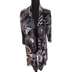 Whispers Womens Open Front Gray Black Print Mesh Cardigan Duster Top Large
