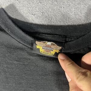 Tag on the bottom hem with Harley Davidson branding.