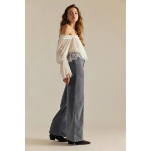 We The Free People Libre Wide Leg High Rise Light Grey Corduroy Pants 28 NWT New