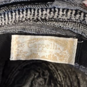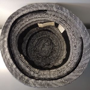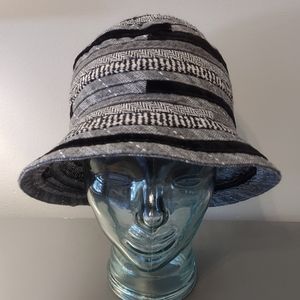 CAPPELLI Bucket Hat Wool Blend Patchwork Striped Textured Black Gray Bell Shaped