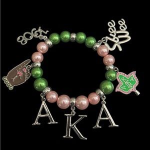 AKA Green and Pink Beaded Charm Bracelet