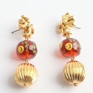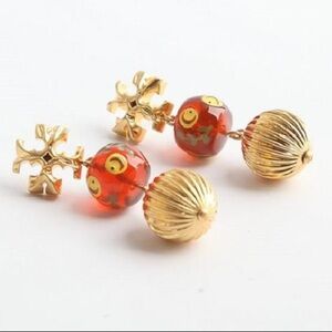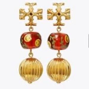 NWOT Tory Burch Small Double-Drop Burnt Sienna Earrings Gold Metal And Red Enamel