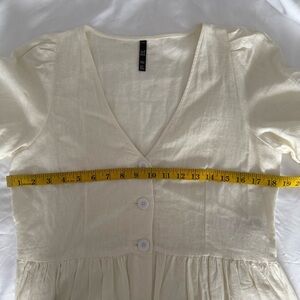 This elegant cream dress features a classic button-down design, perfect for any occasion. The soft fabric and stylish cut offer both comfort and sophistication.