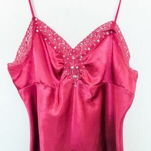 Y2K One Step Up Beaded Lace Cami Dark Pink Size Large Coquette Fairy Glam