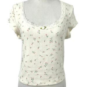 Wild Fable Women Top T-shirt Pointelle Coquette Feminine Rosette Cream Medium